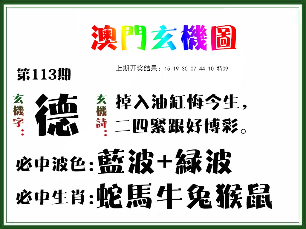 | 110期: ⑨肖 | 虎羊猴兔鼠狗猪蛇龙 | ????中 |